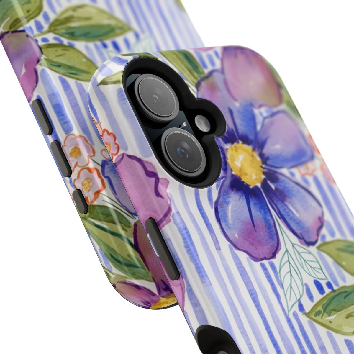 Peachy Keen Magnetic Phone Case, Peach Floral Striped Phone Case, Watercolor Painted Tough Cases