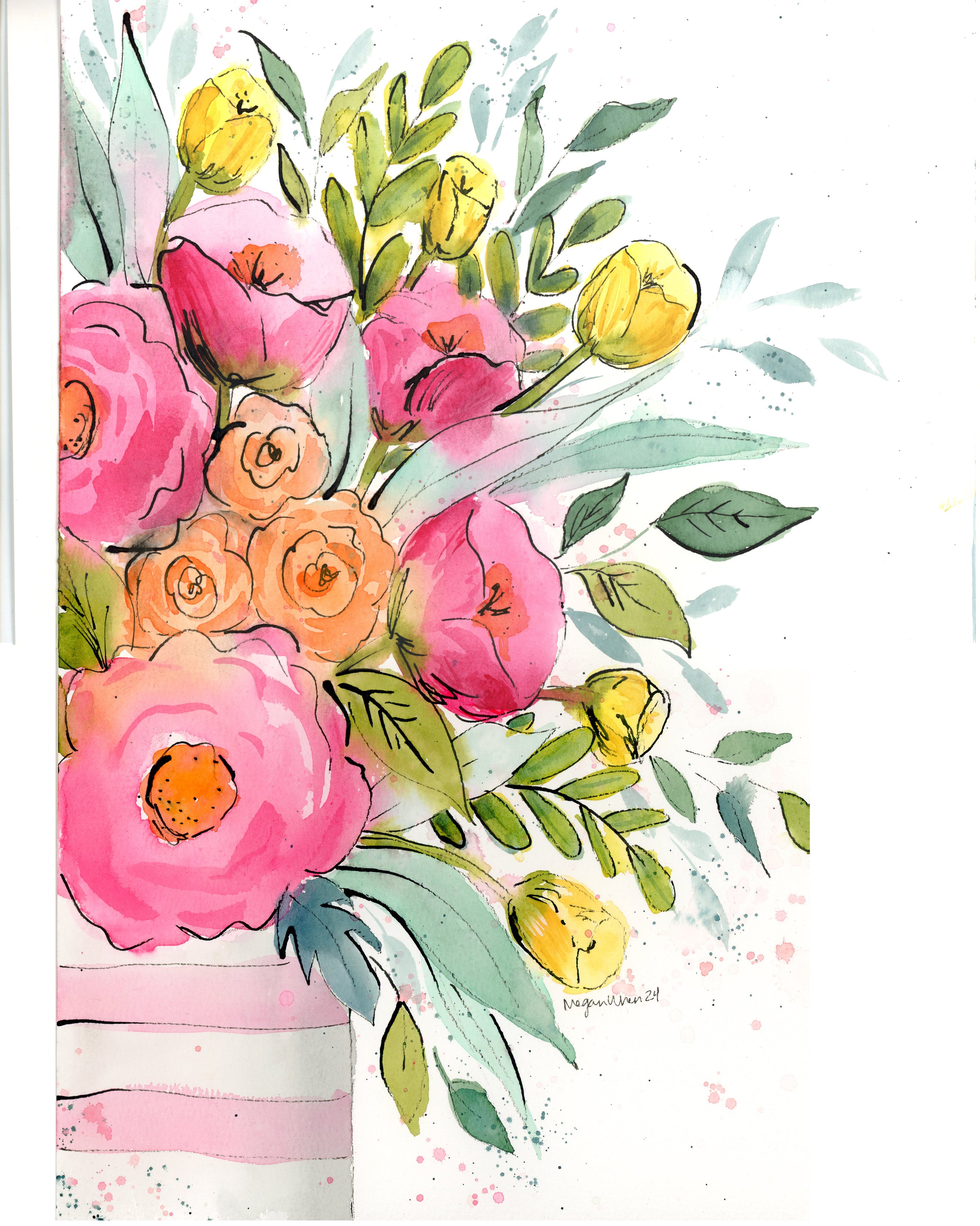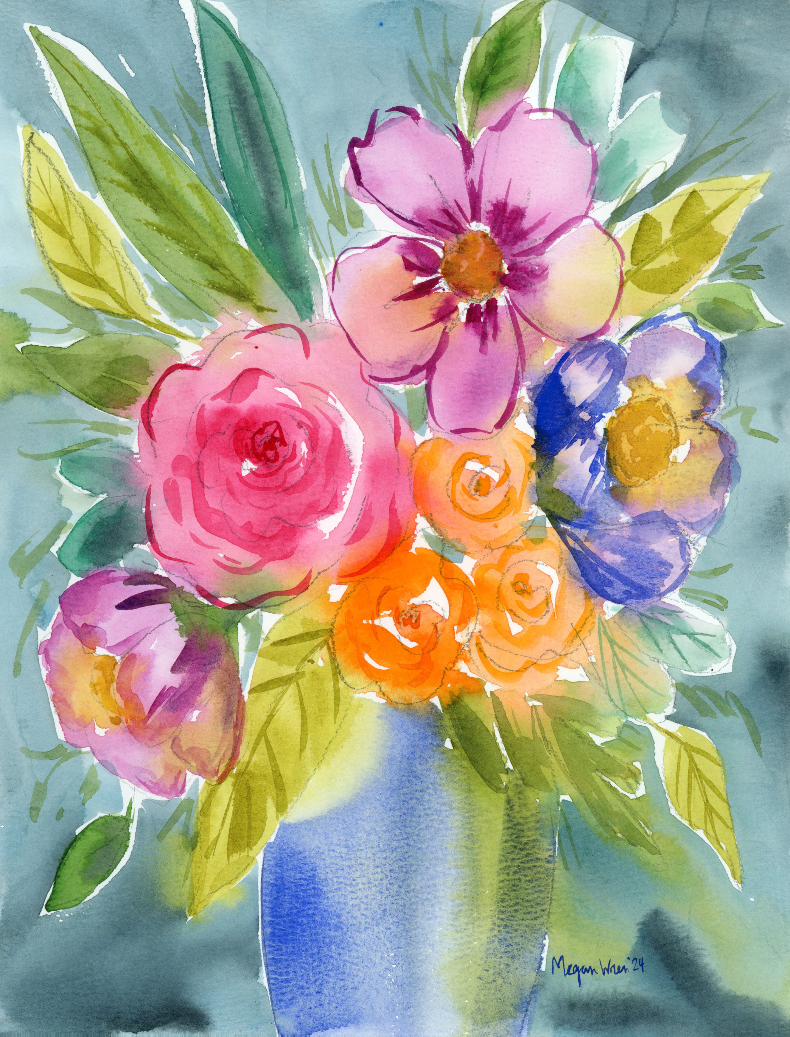 shopA vibrant, loose foral watercolor painting bursting with lively colors and soft flowing brushstrokes, capturing the joyful essence of blooming flowers.