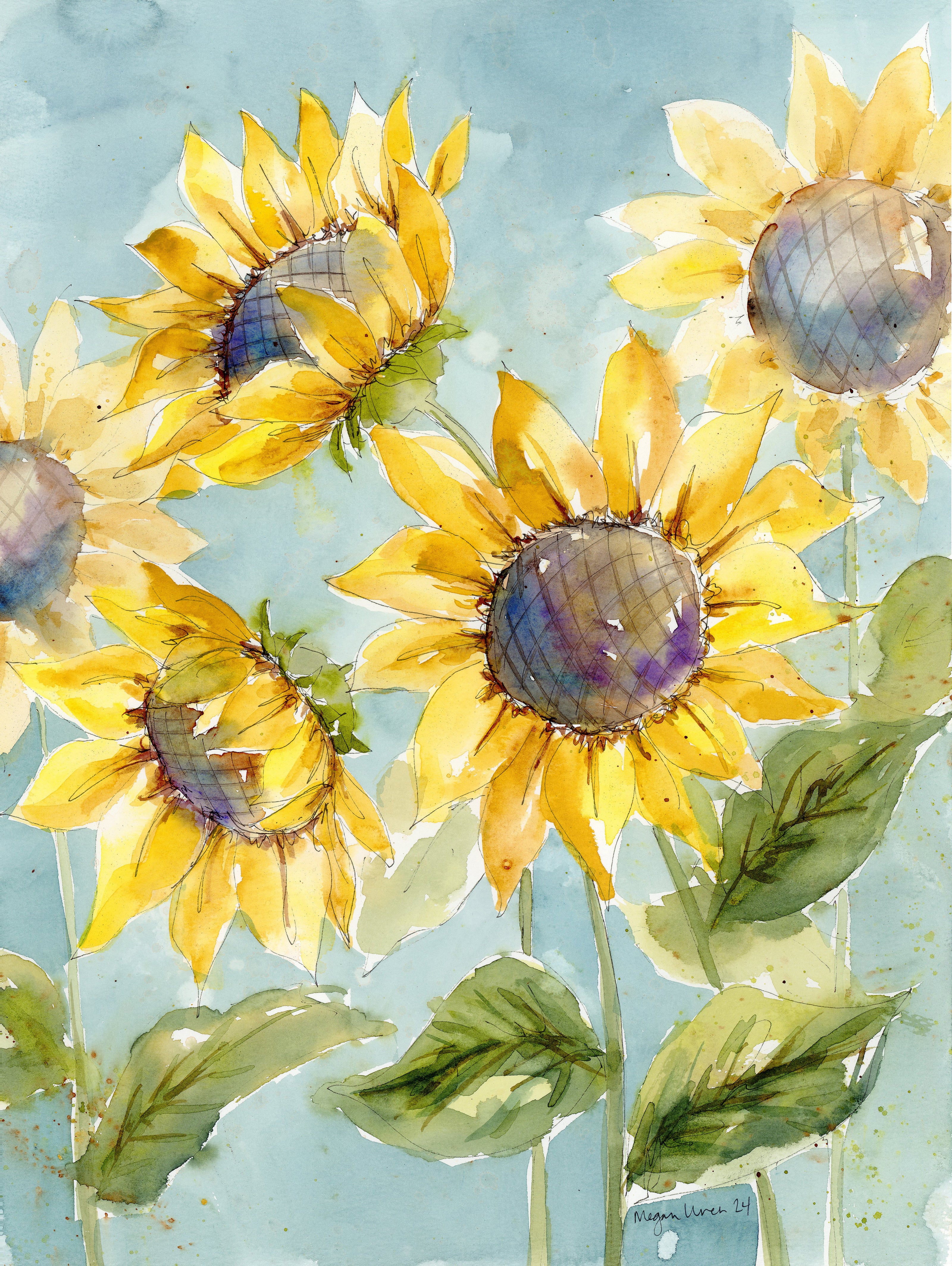 ShopA soft and colorful watercolor featuring gentle blues, calming greens, and peachy orange blooms - capturing the wild, rosy beauty of nature.