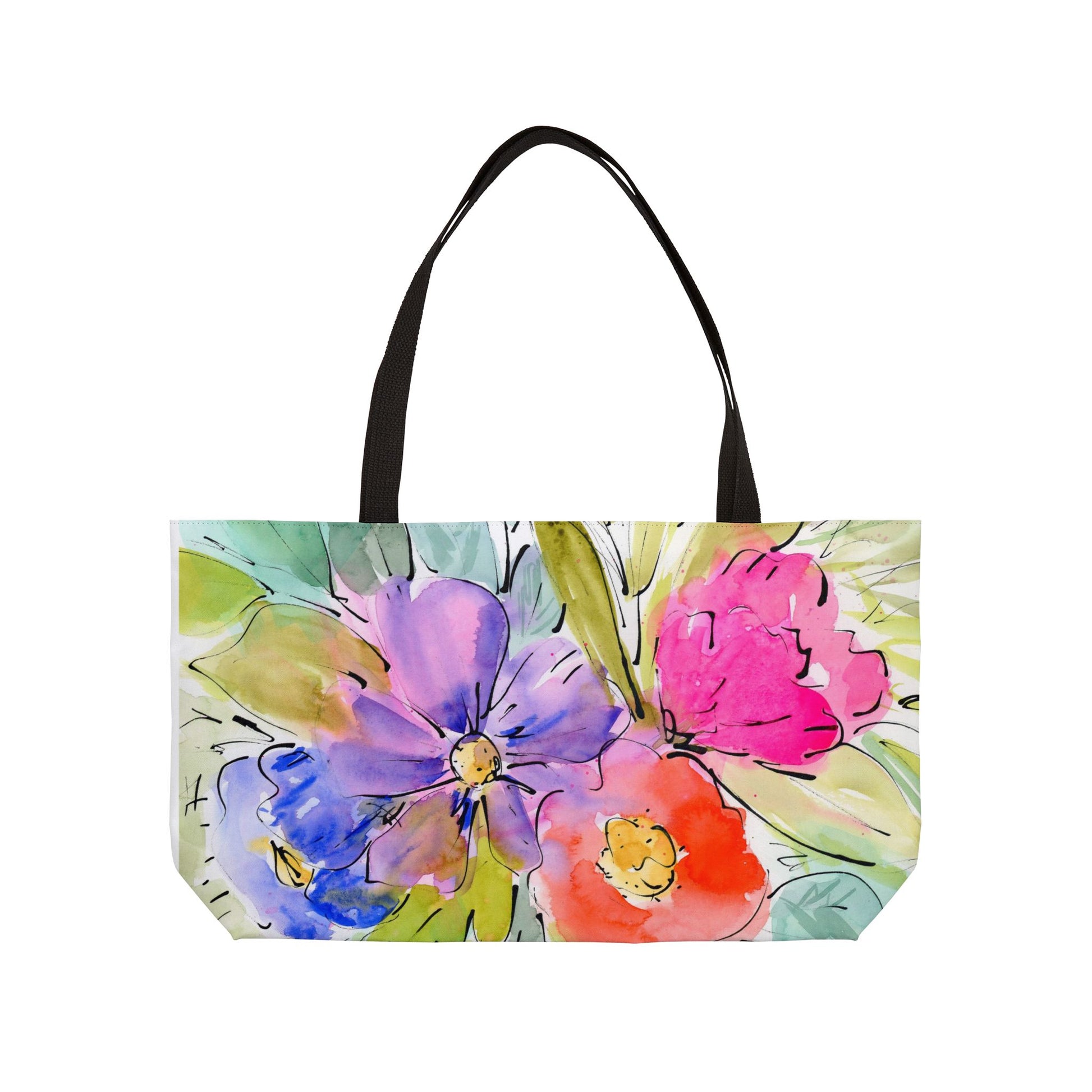 Big Bloom Weekender - Loose Floral Colorful Tote Bag - Large Watercolor Painted Tote, Travel Tote