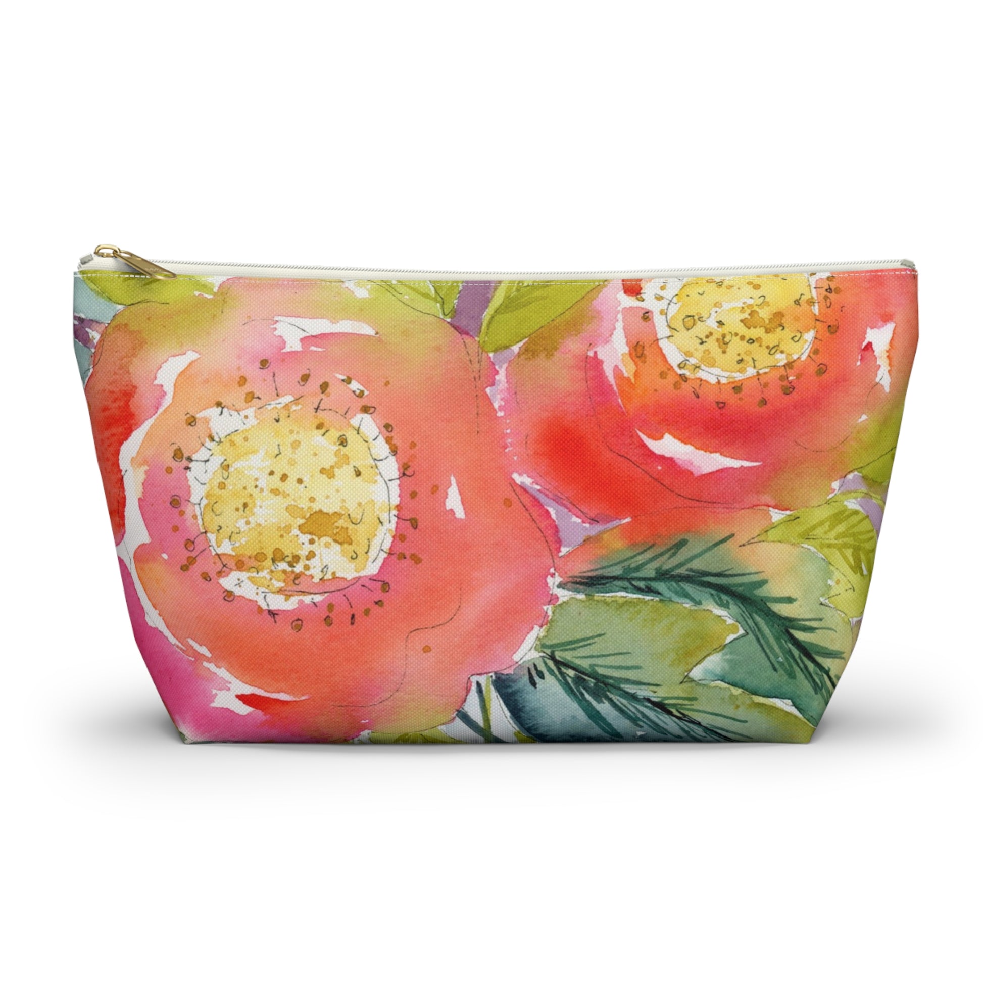 This accessory pouches is made with a my original watercolor artwork featuring colorful flowers. I want to bing color, joy and organization into your everyday. These pouches are well made small bags with non-woven laminate inside for easy cleaning. The pouch zips shut to keep your things safe and organized. They are perfect for makeup, traveling, daycare, school, and as gifts. With two sizes they are both practical and fun. Ideal for anyone one the go these pouches are assembled in the USA from globally sourced parts.