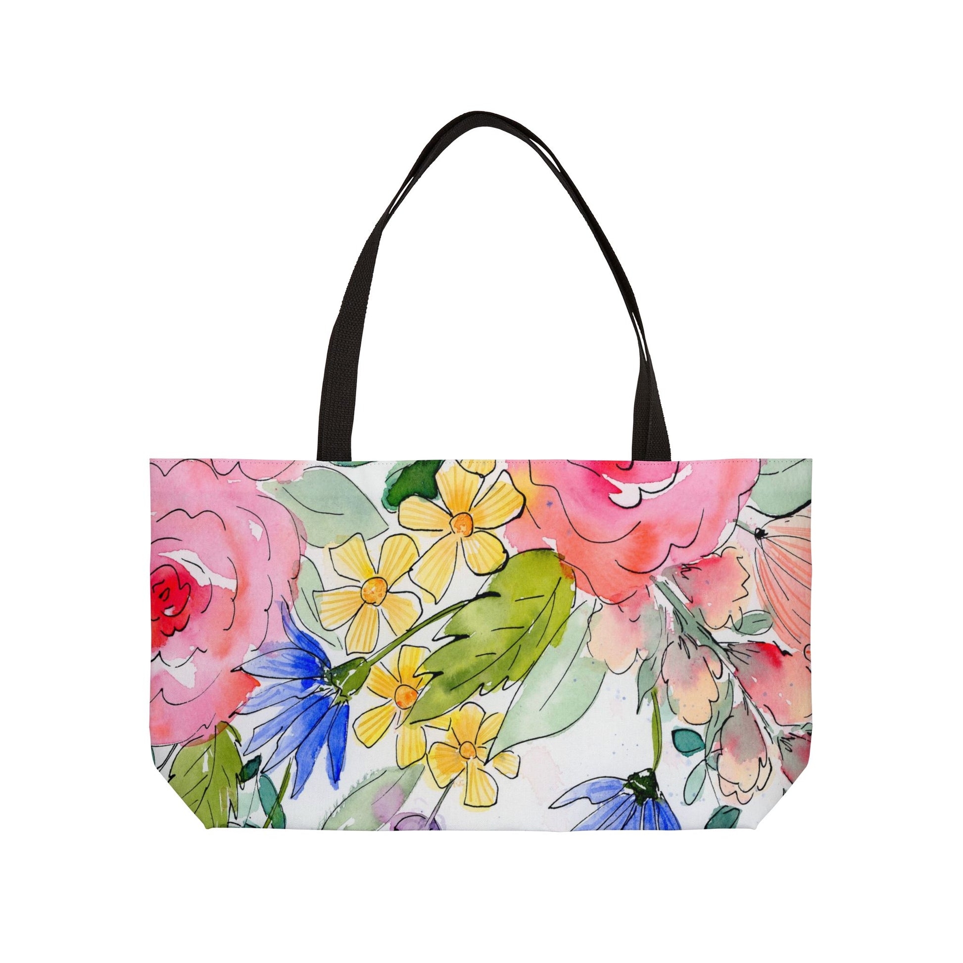 Bold Floral Weekender Tote Bag - Large Watercolor Painted Tote, Great Gift for Mom, Teachers, Graduation - Travel Tote, Collage Bag,