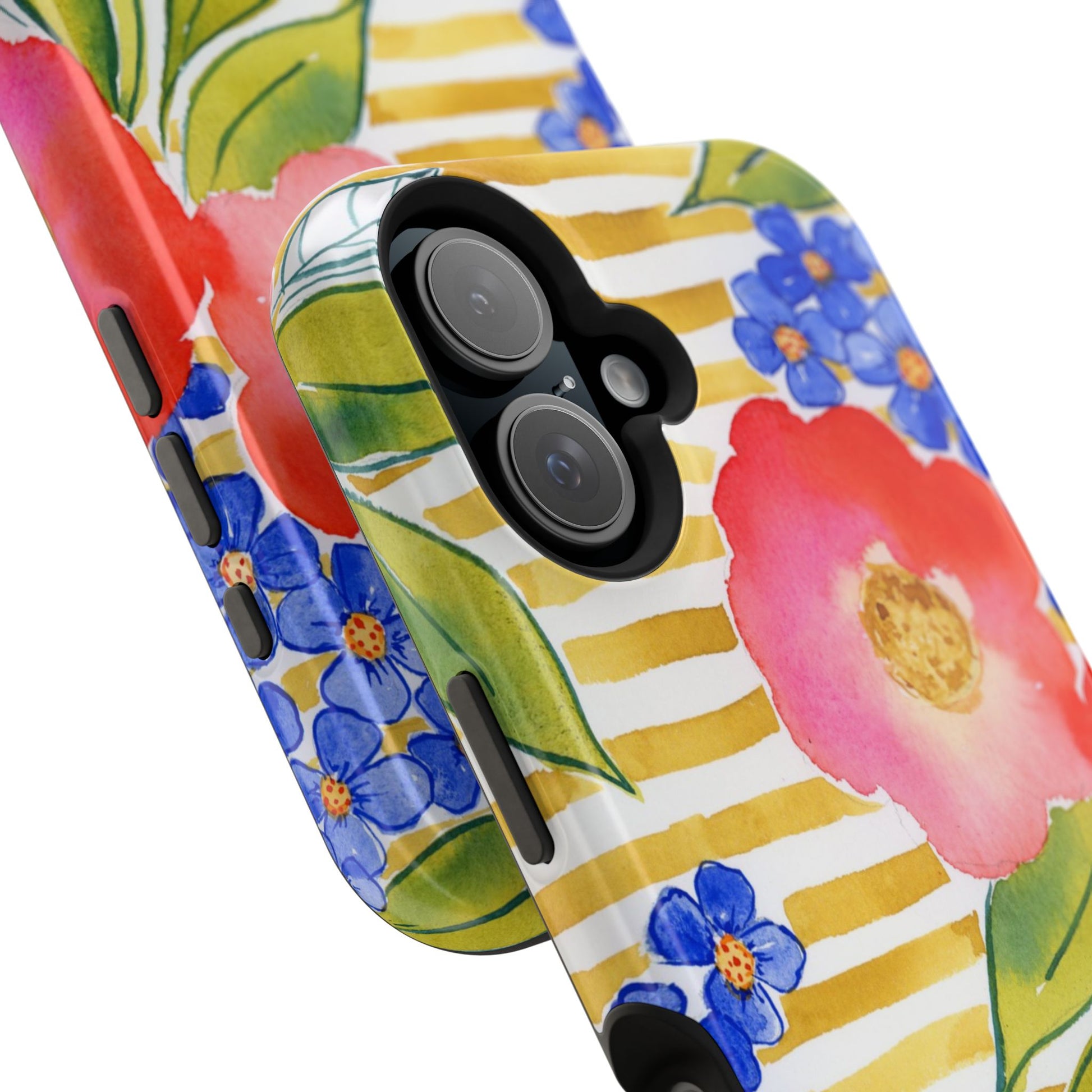 Golden Meadow Magnetic Phone Case, Gold Striped Floral Magnetic Phone Case