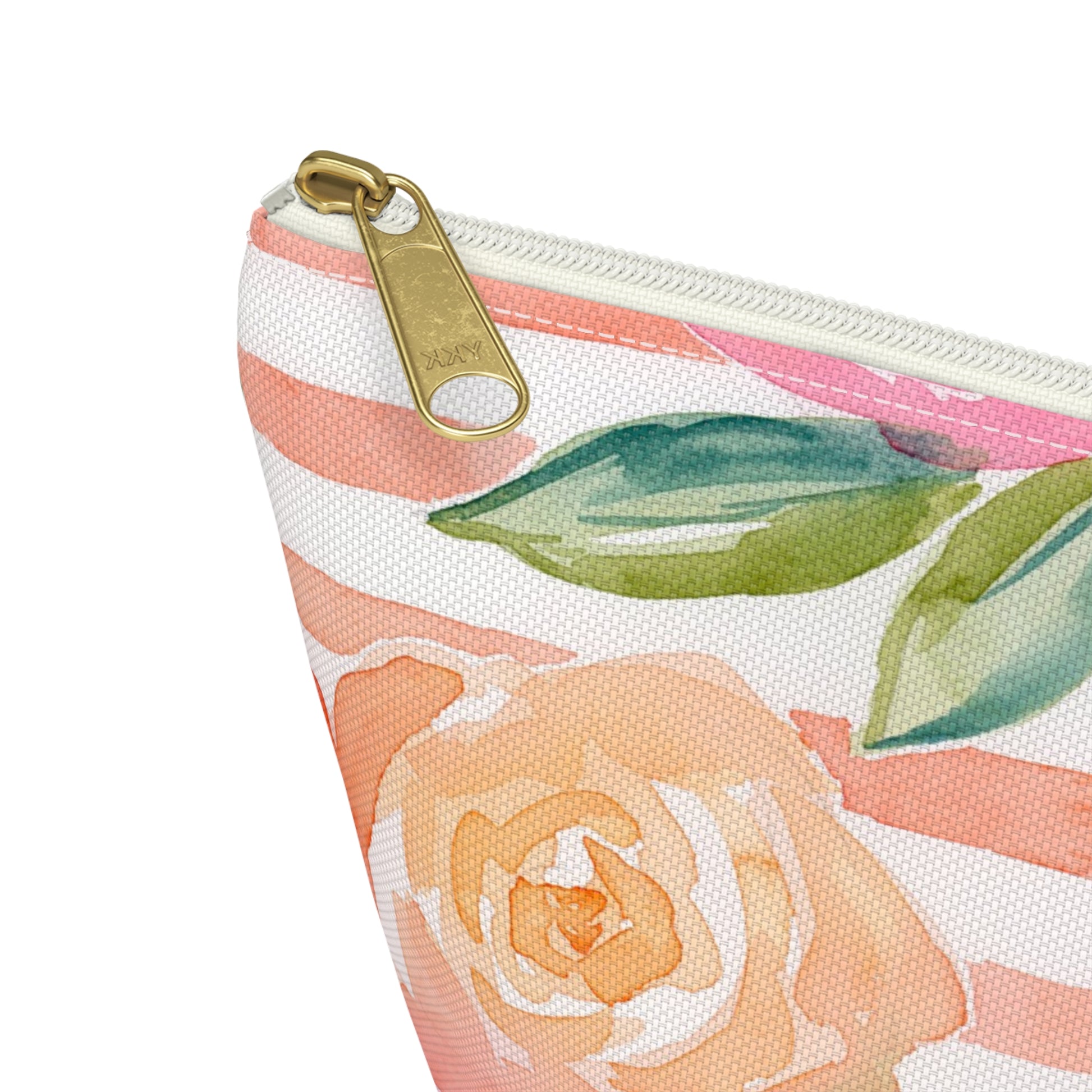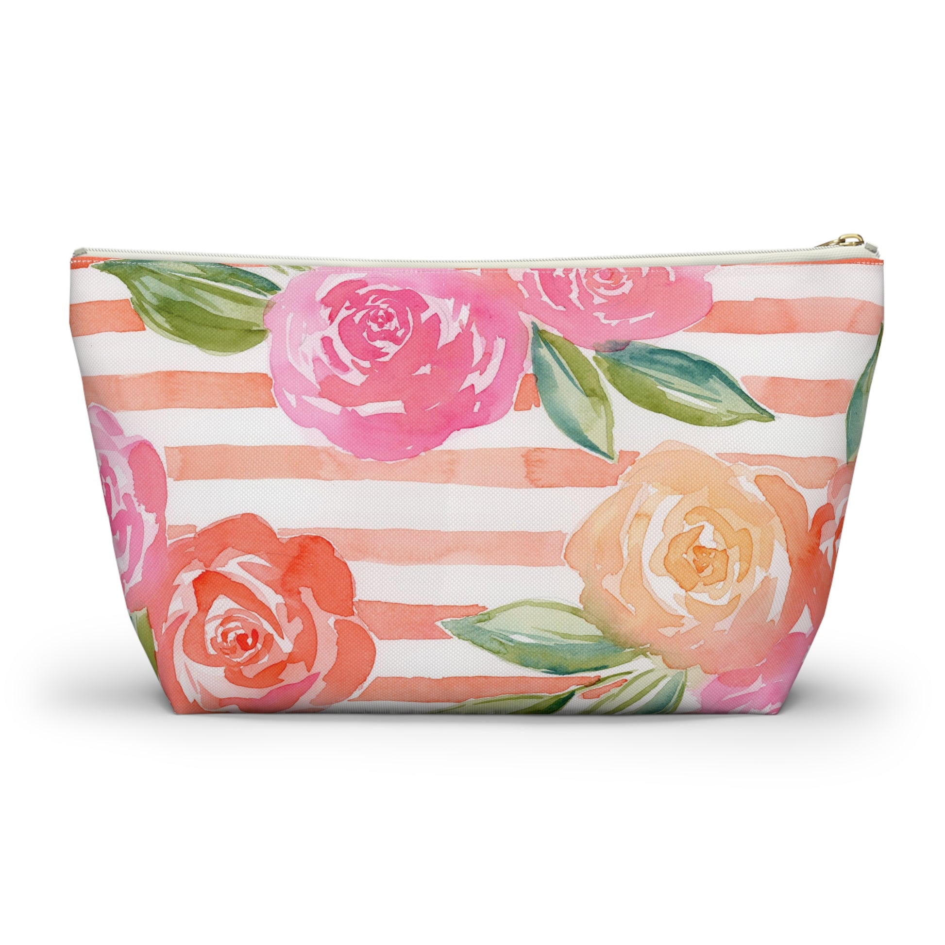 Peachy Keen Accessory Pouch w T-Bottom, Petals & Pinstripe Collection