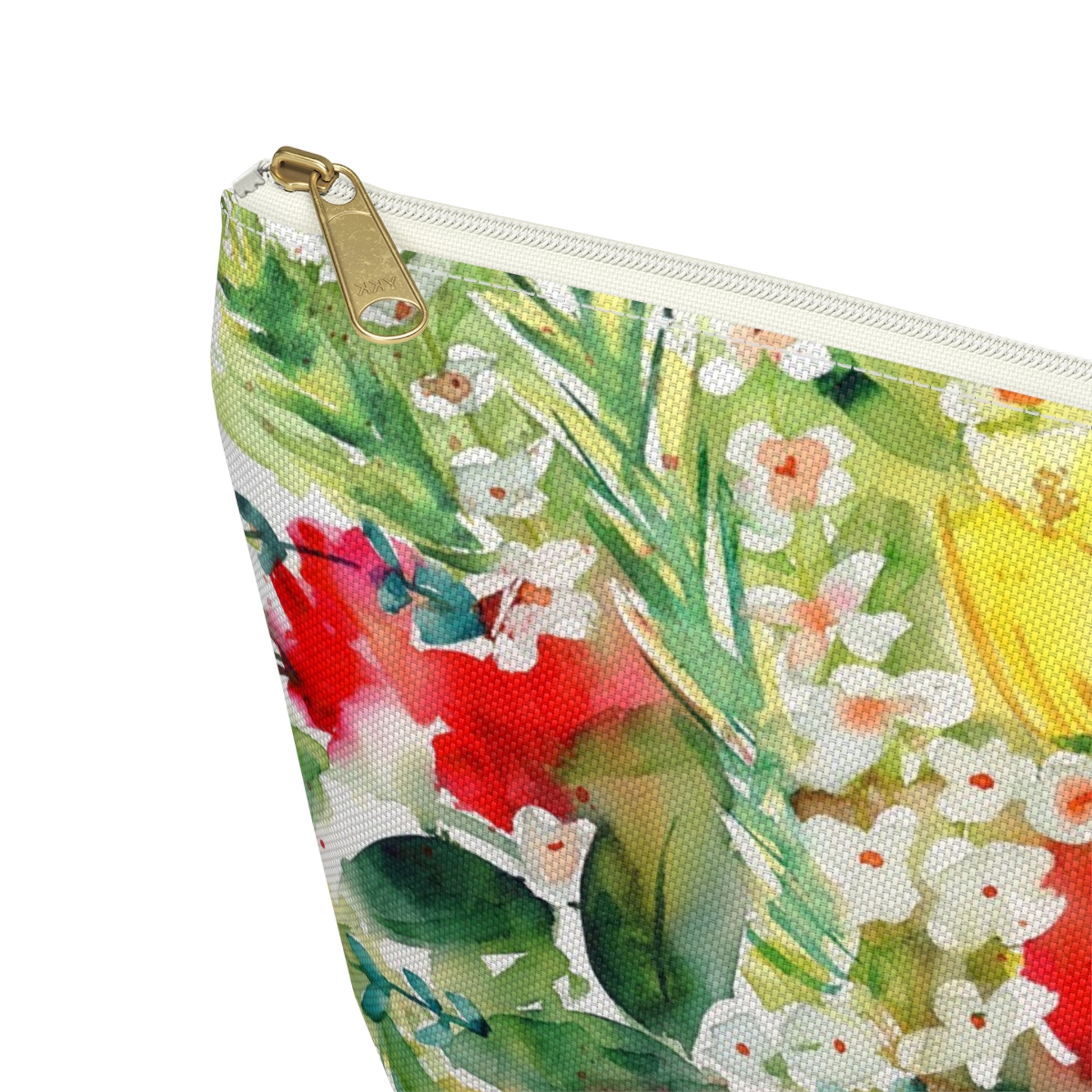 This accessory pouches is made with a colorful images of my original watercolor artwork featuring patriotic flowers and an American flag. I want to bing color, joy and organization into your everyday. These pouches are well made small bags with non-woven laminate inside for easy cleaning. The pouch zips shut to keep your things safe and organized. They are perfect for makeup, traveling, daycare, school, and as gifts. With two sizes they are both practical and fun. Ideal for anyone one the go.